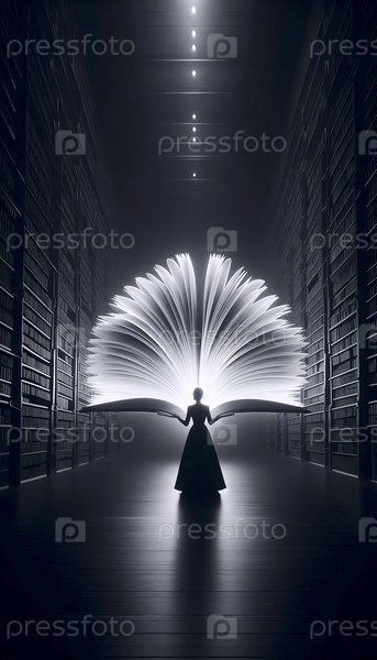 Широкая, минималистичная фотография в темной пустой библиотеке Ai generated image