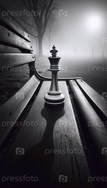 Одинокая шахматная фигура на скамейке в парке, Ai generated image