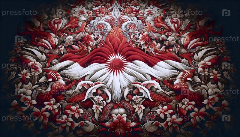 Индонезийский флаг в традиционном батикском искусстве, Ai generated image A