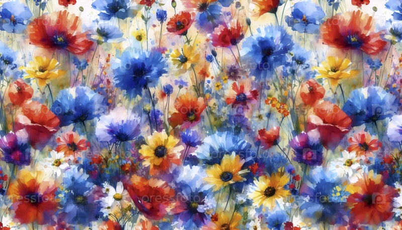 Акварель дикие цветы яркие художественные узоры плавный дизайн, Ai generated image