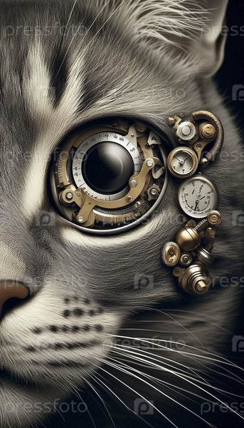Ближайший план механического наклейки для лица steampunk cats, Ai generated image