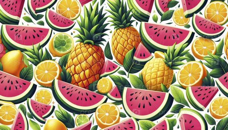 Сочный бесшовный рисунок тропических фруктов, Ai generated image