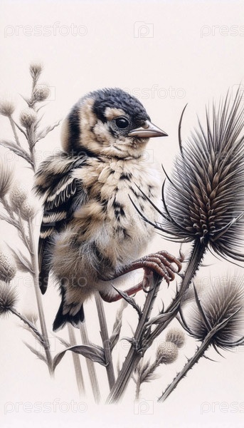 цыпленок золотистого журавля на рисунке чернилами из хвойного терса художественная печать, Ai generated image