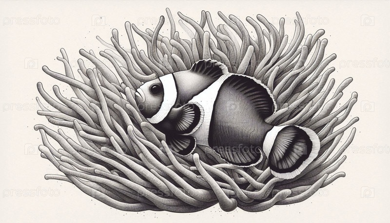 Клоунфиш чернила рисование арт-принт, Ai generated image A
