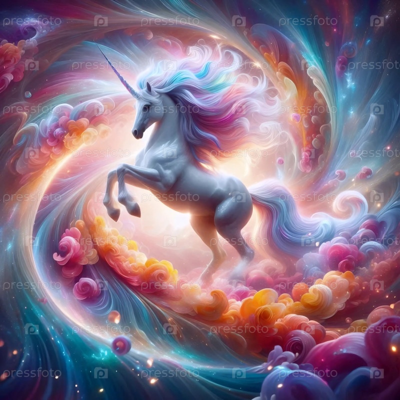Единорог в вихре листьев, Ai generated image