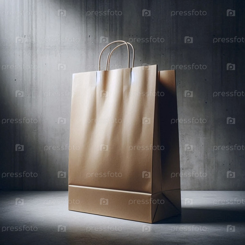 Мокет бумажной сумки с плоским дном, стоящий прямо и пустой, Ai generated image