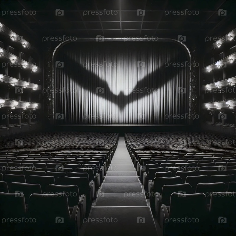 Широкий снимок из задней части пустой аудитории, подчеркивая масштаб и загадку, Ай создал образ