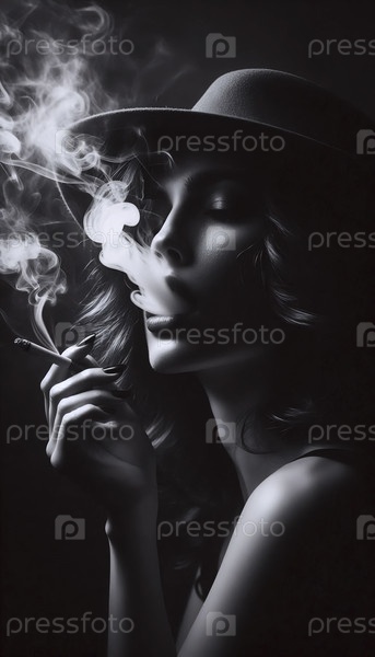 Винтажный фильм-нуар курящий портрет, Ai generated image