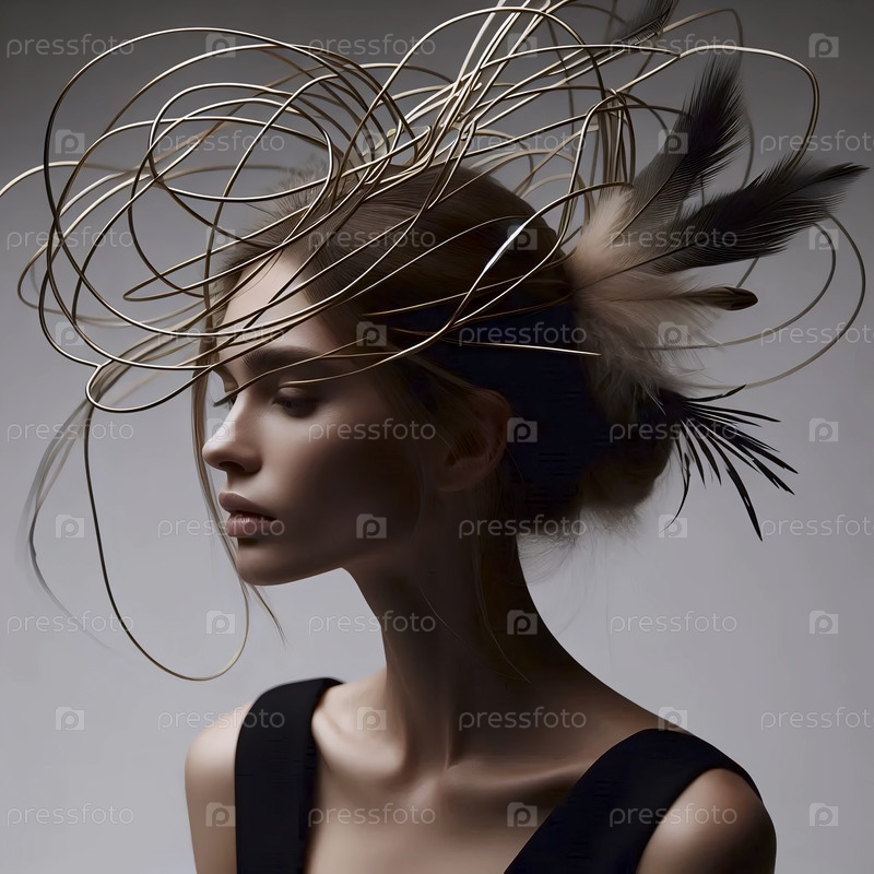 Авангардный головный убор из проволоки и перьев, Ai создал образ