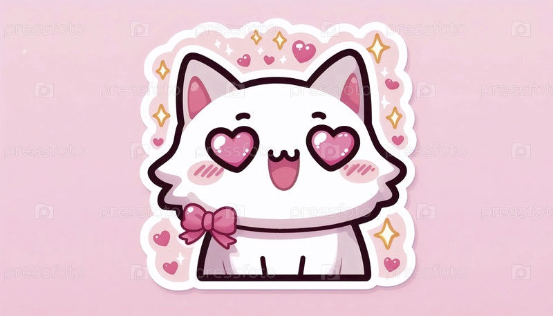 Кошка с глазами сердца влюбленная наклейка, Ai generated image