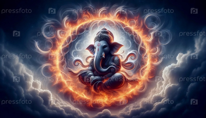 Господь Ганеша внутри огненного круга, Ай создал изображение