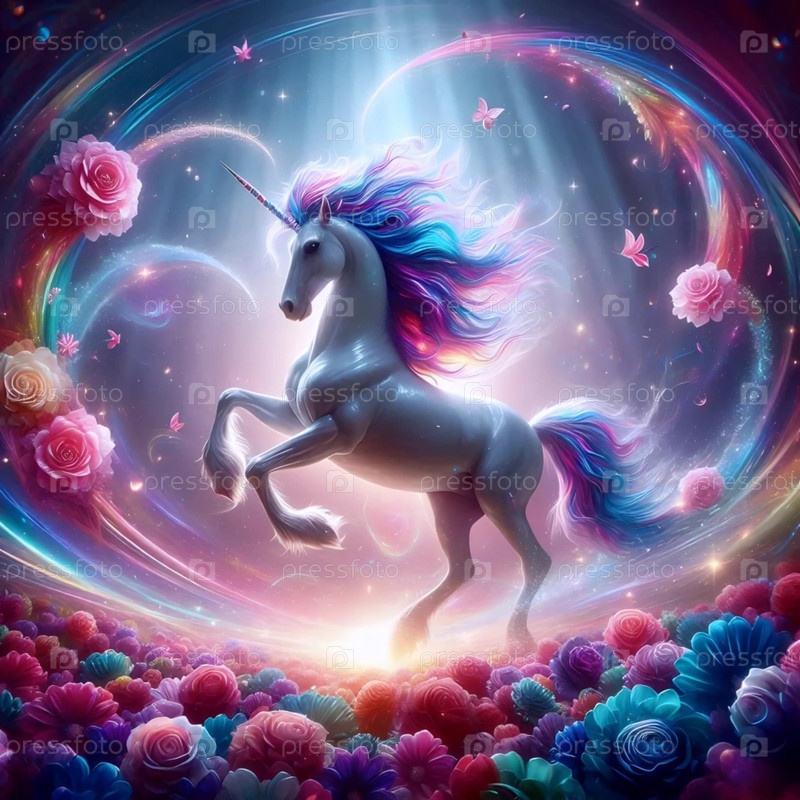 Единорог в вихре листьев, Ai generated image
