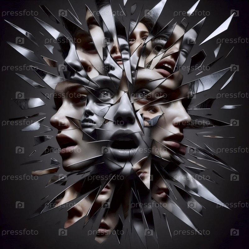 Сюрреалистическое отражение в разбитых зеркалах, Ai generated image