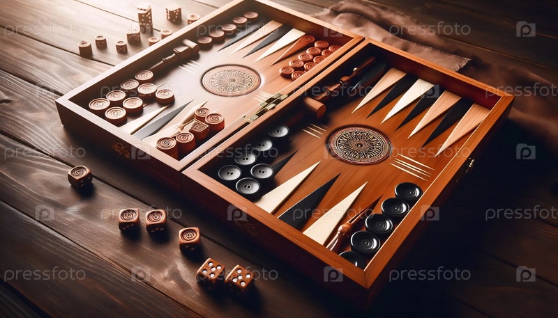 Игра в бэкгаммон с деревянной доской, Ai generated image