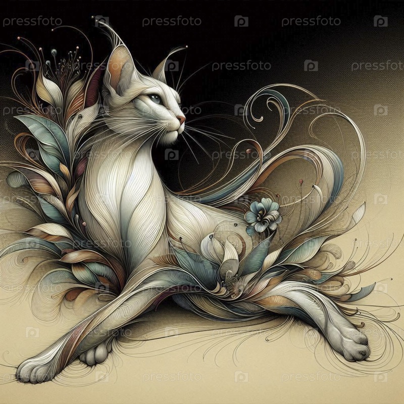 Художественный иллюстративный принт кошки, Ai generated image