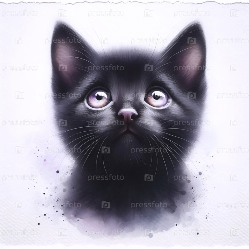 Милая акварельная живопись просящего кота, Ai generated image