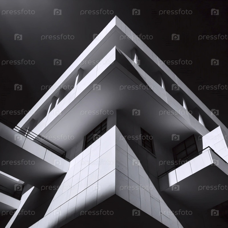 Черно-белый фотографический принт современной архитектуры середины века, Ai generated image