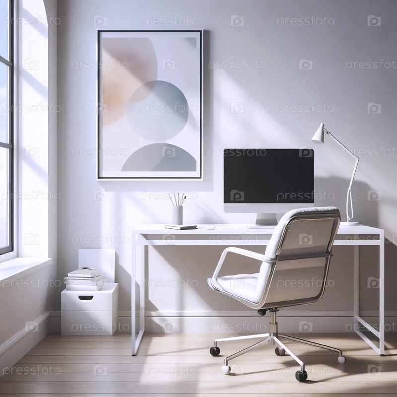 Яркое и прозрачное минималистическое рабочее пространство, Ai generated image A