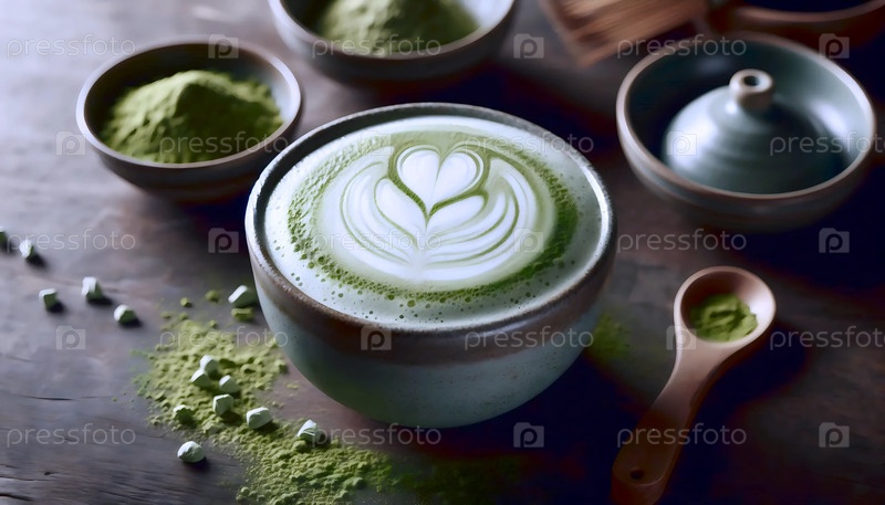 Матч латте керамический стакан, Ai generated image