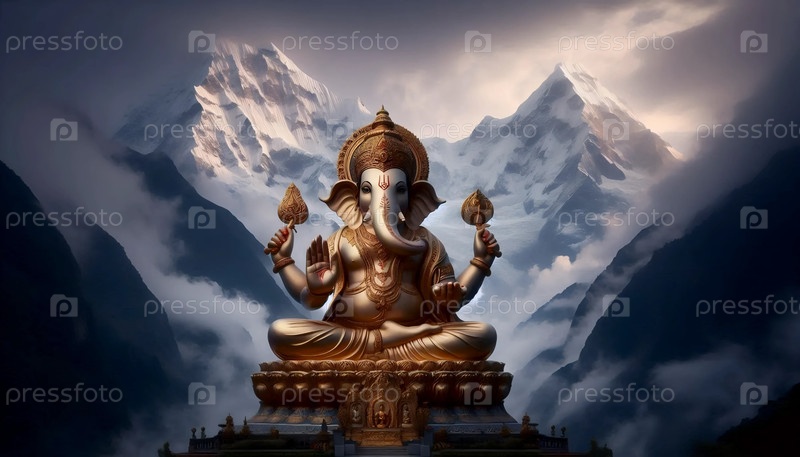 Господь Ганеша с горным фоном, Ai generated image