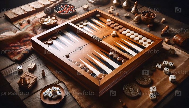 Игра в бэкгаммон с деревянной доской, Ai generated image