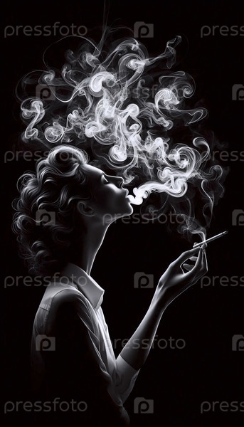 Винтажный фильм-нуар курящий портрет, Ai generated image