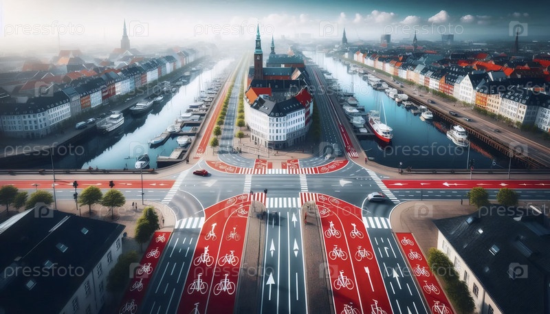 Датский флаг в планировании велосипедного города, Ai generated image A