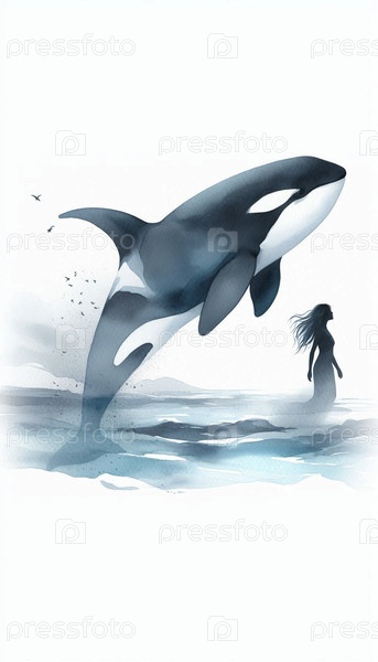 Водяной рисунок искусства кита-орки, Ai generated image