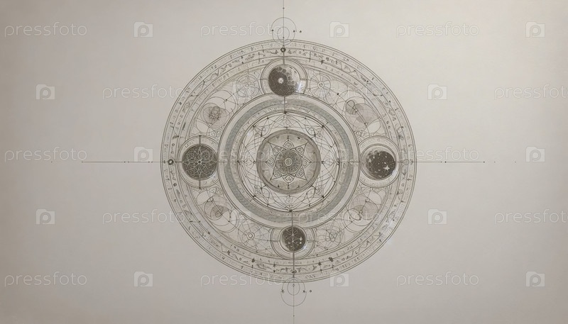 Небесная мистическая художественная печать тонкой линии, Ai generated image