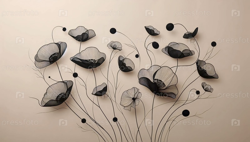 современное черное цветочное искусство