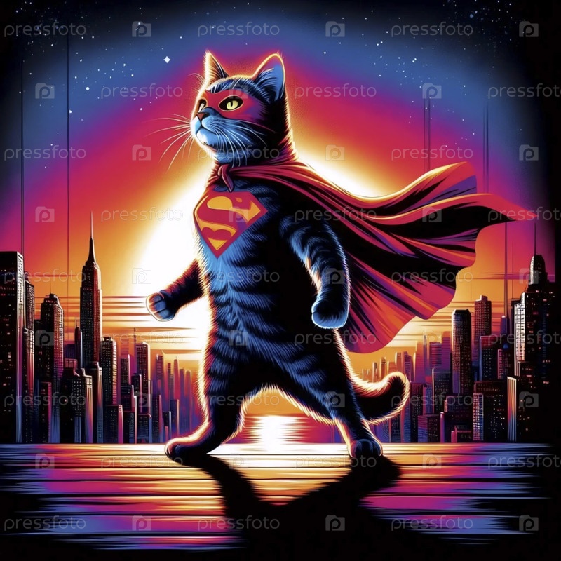 Супергерой-кошка в плато, афиша Ai generated image