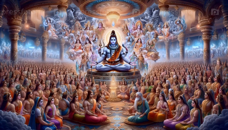 Господь Шива в окружении богов, Ai generated image A
