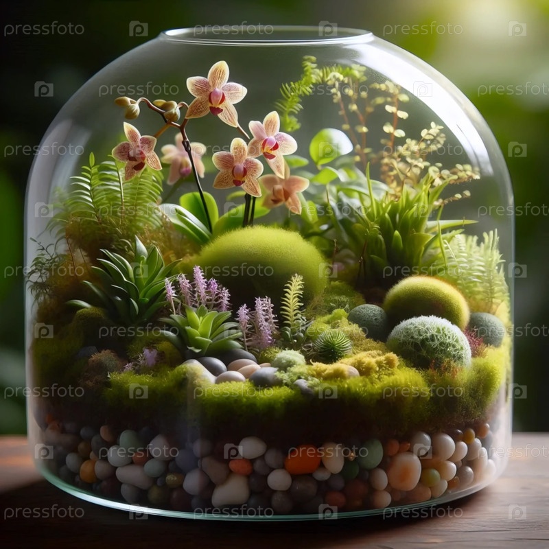 Миниатюрные орхидеи в террариуме, Ai generated image