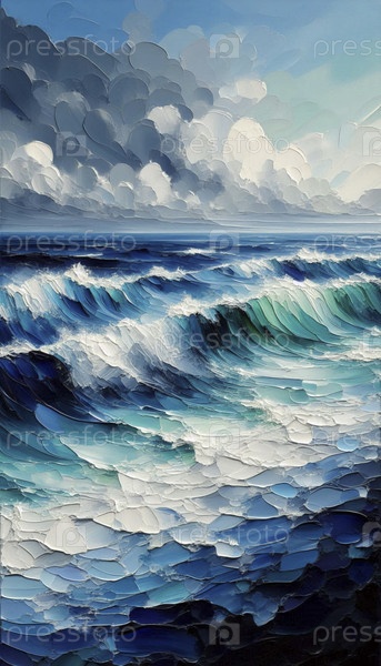 Текстильная масляная живопись океанских волн, Ai generated image A