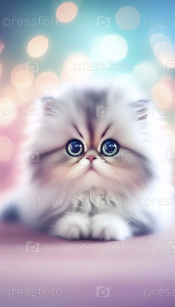 Пушистое котенок с большими глазами портрет, Ai generated image