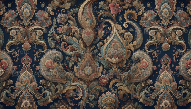 A Mughal style Paisley pattern seamless design, Ai generated image В могольском стиле бесшовный дизайн узора Пейсли, созданного изображением