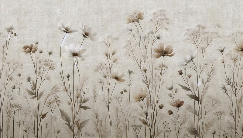 Бежевый цветочный шаблон плитки в светлых нейтральных тонах бесшовный дизайн, Ai generated image