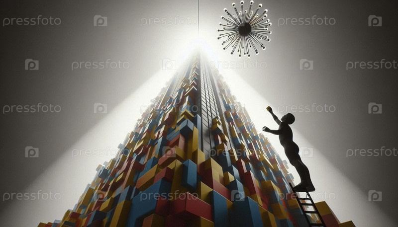 Ребенок, строящий высокий город-блок, Ai generated image