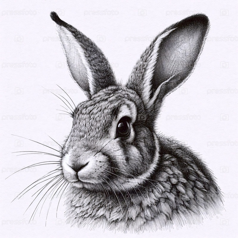 Bunny ink drawing art print, Ai generated image A Аи создал изображение с чернилами кроликов