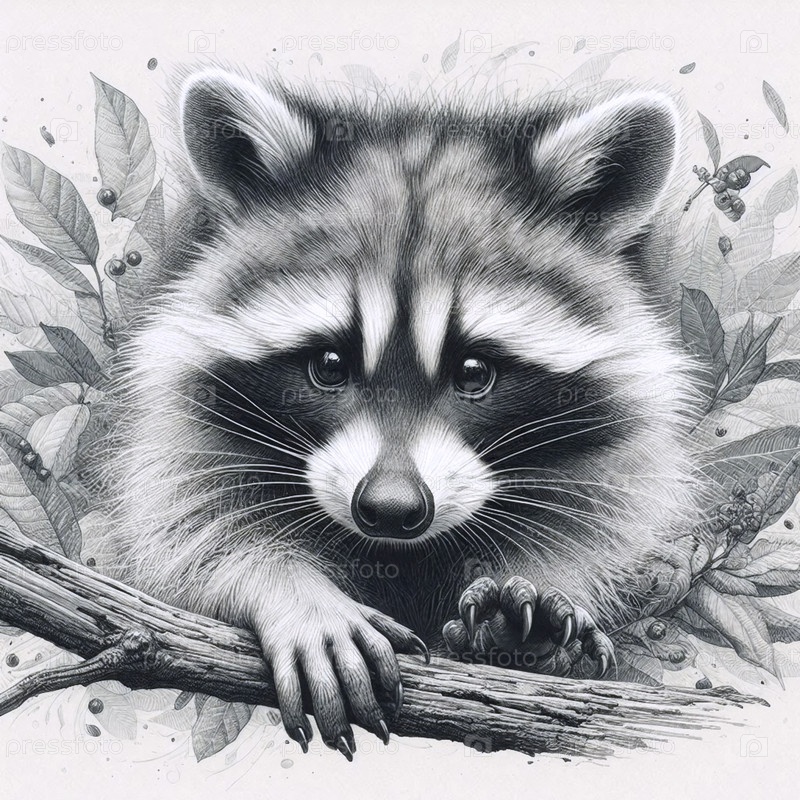 A mischievous raccoon ink drawing art print, Ai generated image (Ai создал изображение с чернильным рисунком енота)