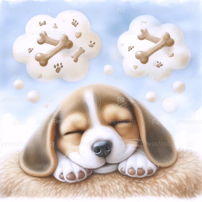 Щенок мечтает о костях Акварельный арт-принт, Ai generated image