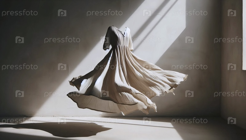 Макет свободного льняного платья в овсяном цвете, мягко дующий перед простой стеной, Ай создал изображение