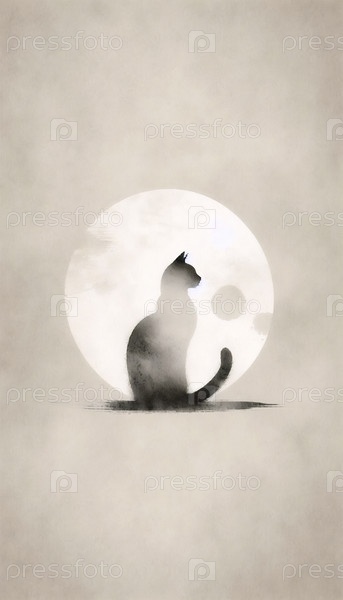 кот в японском стиле минималистский