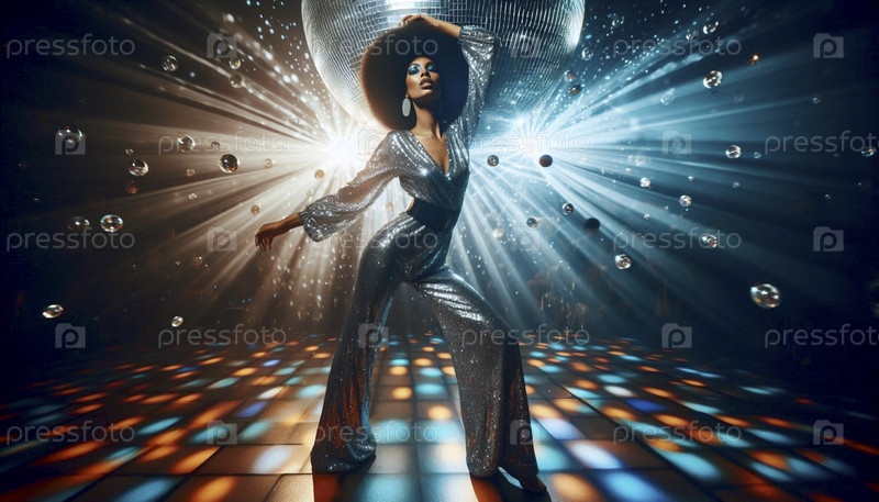 Диск 1970-х годов под зеркальным шаром, Ai generated image