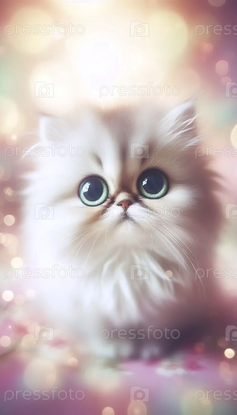Пушистое котенок с большими глазами портрет, Ai generated image