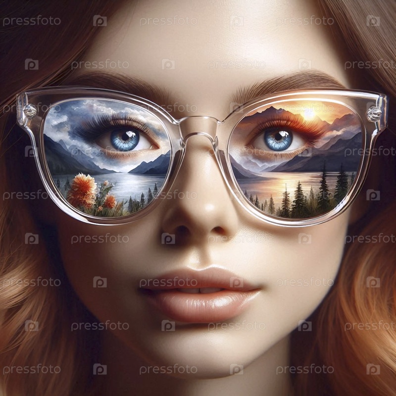 Очки, отражающие акварельные пейзажи, Ai generated image