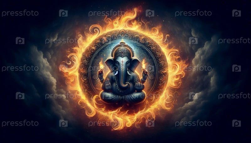 Господь Ганеша внутри огненного круга, Ай создал изображение