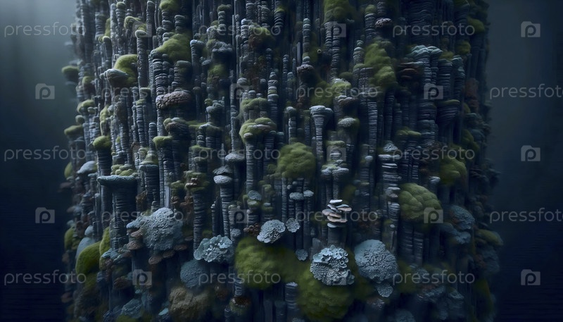 Экстремально крупный макет глубоко вырубленной коры дерева, показывающий слои мха и лишайника в лесу, Ai создал изображение