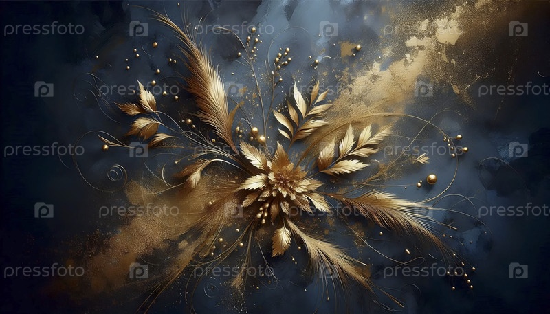 Абстрактная живопись с золотым брызгом, Ai generated image