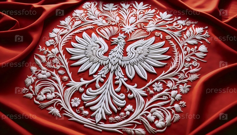 Польский флаг в традиционной народной вышивке, Ai generated image